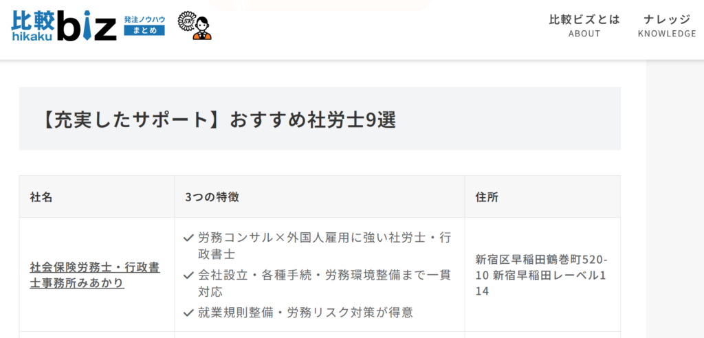 ※中小企業向けプラットフォーム「比較ビズ」に公認され、特集記事では“充実したサポートの社労士”として紹介されています。